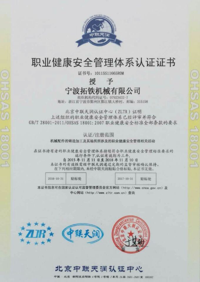 2015年11月,云博app官方在线入口机械获得国家ISO9001质量管理体系认证,ISO14001环境管理体系认证和OHSAS18001职业健康安全管理体系认证。
